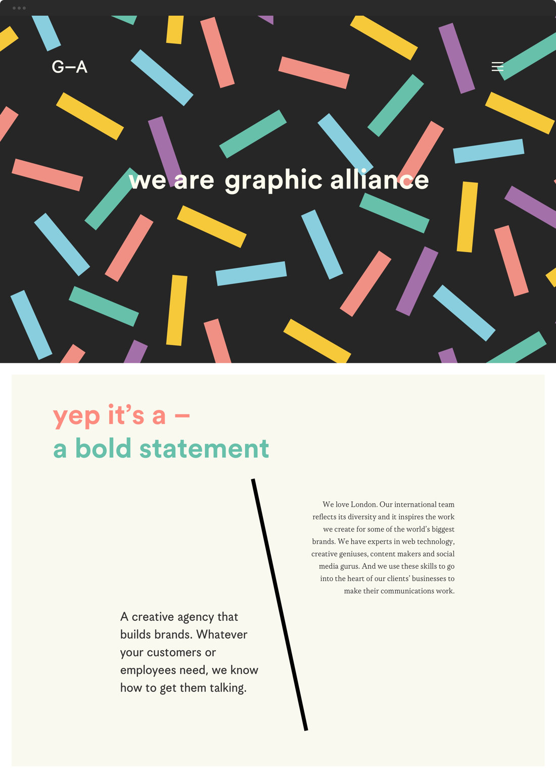 Graphic Alliance (GA) is a digital agency located in the heart of London. During my time as a designer at GA, I had the opportunity to design the agency’s new website.